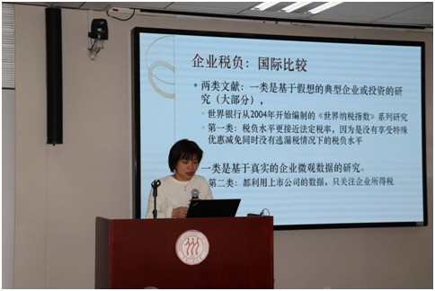 吴斌珍教授从“中国企业税费负担重不重”和“负担分布是否平等”两个问题出发,分析了中国企业税负问题。她认为,从国际比较来看,中国的企业所得税不高,企业负担重的主要原因是社保缴费和流转税。而且社保实际缴费负担呈上升趋势。通过分析微观企业税负,发现社保是企业负担的主要来源,中国企业税负的不平等程度较高,其影响因素主要包括上下游分布、竞争程度、创新程度、所有制结构、企业特征等。据此提出了降低社会保障费和流转税、增加普惠、减少个体化税收减免以及考虑行业间辐射效应的政策建议。