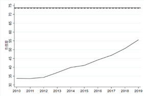 a) 中国负债率与门槛值的比较