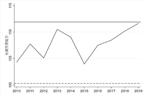 沿用IMF的“备忘项债务”统计口径。2019年,中国政府债务负债率为55.57%,低于60%的国际警戒线标准,远低于日本和美国等主要发达国家的债务水平,也低于拉丁美洲和加勒比地区、中东和中亚、撒哈拉以南非洲的平均水平。2010—2019年,中国的长期负债能力指标平均水平为107.84%,高于日本和美国等主要发达国家;同一时期,该指标在日本的平均水平为101.68%,在美国平均为103.83%。这表明,静态指标反映我国政府债务规模的风险水平可控,但从动态指标看,随着中国政府债务规模持续扩大,导致经济增长的长期负债能力持续减弱,应当对动态累积中的债务风险保持高度警惕。