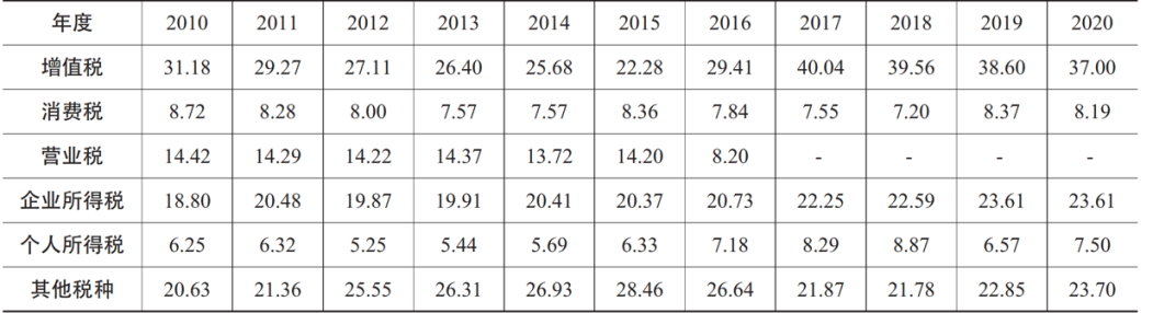 表1 各主要税种占总税收收入的比重