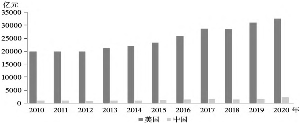 图1 中美两国慈善捐赠额对比