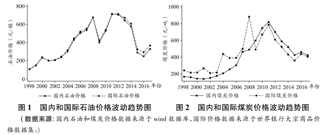 本文使用1998—2018年中国地级市数据,利用外生的资源价格冲击研究了采矿业景气对地方公共品提供的影响。一个地区的采矿业产值具有内生性,因此本文根据资源价格的波动,利用价格冲击构建了“潜在采矿业产值”变量,较好地解决了采矿业景气的内生性问题。如图1和图2所示,2003—2008年间,煤炭和石油等价格快速上升,但2013—2016年,资源价格明显下跌。采矿业的景气程度对资源型地区的财政收入带来了直接的影响。以内蒙古鄂尔多斯市为例,2003—2008年期间,由于煤炭价格的快速上涨,该市一般公共预算收入从14.734亿元上升到118.198亿元,年均增长率达到51.656%,但是2013—2016年间地方一般公共预算收入年均增长率大幅滑落至0.717%。因此,资源价格的大幅度波动,有助于我们识别采矿业繁荣所带来的“飞来横财式”财政收入是否有效地转化成了公共品供给。