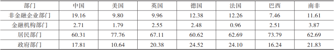 表1 部门可支配收入分配格局国际比较(2019年) 单位:%
