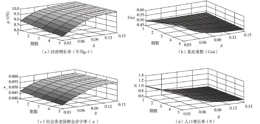 变化对经济增长率、基尼系数、社会养老保障金赤字率和人口增长率动态过渡的影响