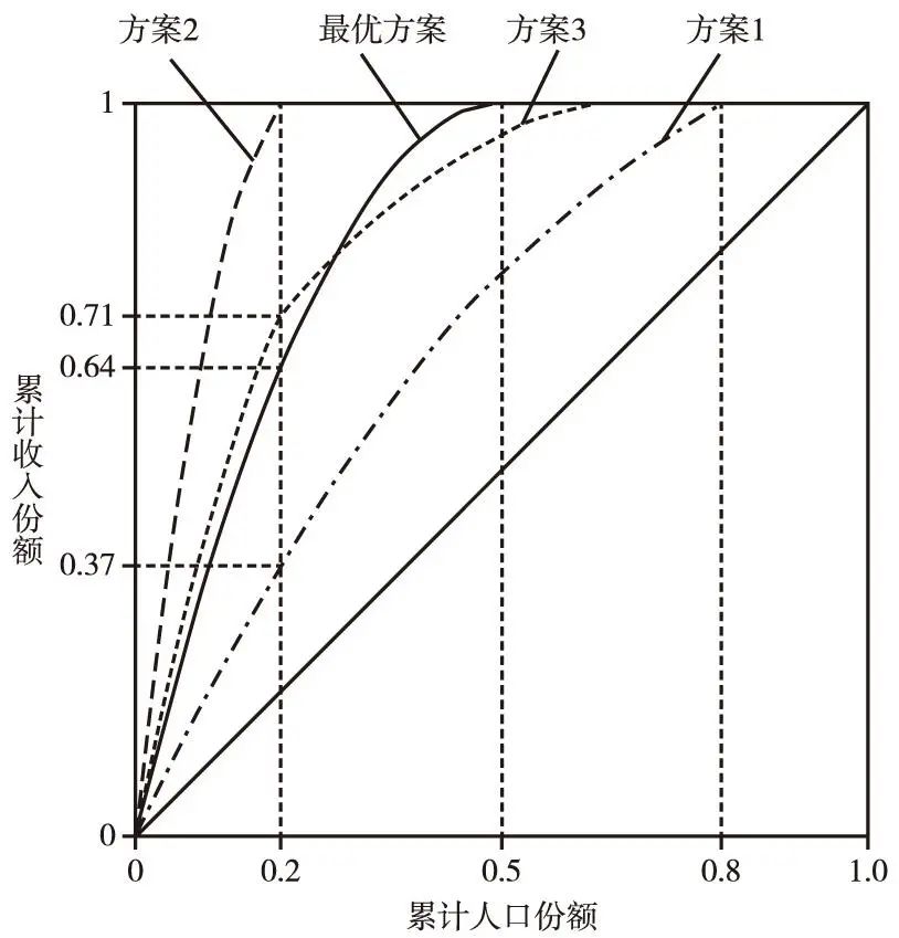 图2 不同转移支付方案的集中率曲线