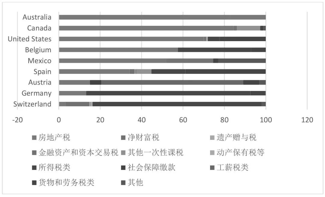 图4 房地产税及其他各税在联邦制各国基层政府税收总收入中的比重(2017年)