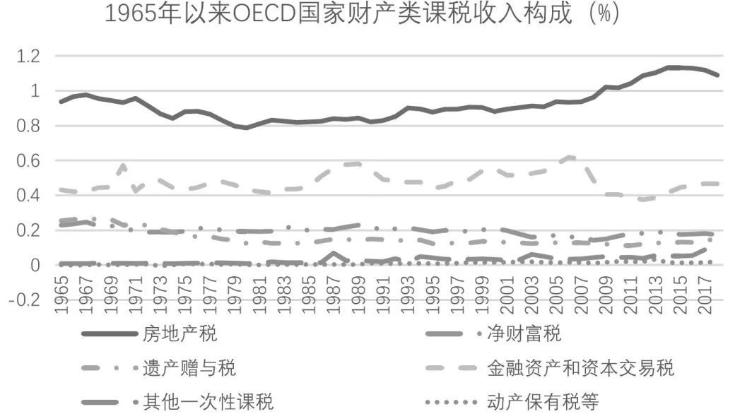 图1 1965年至2017年OECD国家财产类课税收入构成