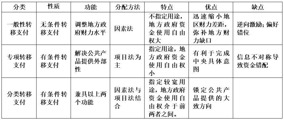 三类转移支付的比较见表2。