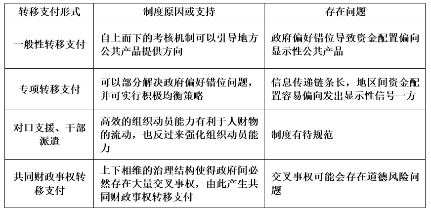 第四,“上下相维”的治理结构对转移支付制度也产生不利影响。就一般性转移支付而言,政府偏好错位导致资金配置偏向显示性公共产品;就专项转移支付制度而言,多层级政府间信息传递链条长,地区间资金配置偏向发出显示性信号一方;就共同事权转移支付而言,交叉事权可能会存在道德风险问题。