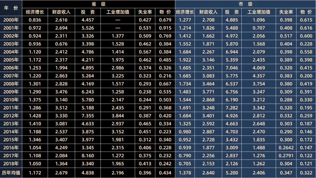 本文则在阐明多目标治理这一事实的基础上,聚焦于经济增长、财政收入、投资、工业增加值、失业率、物价六大核心目标,通过更为丰富的数据样本总结出规律,这也是本文的贡献所在。